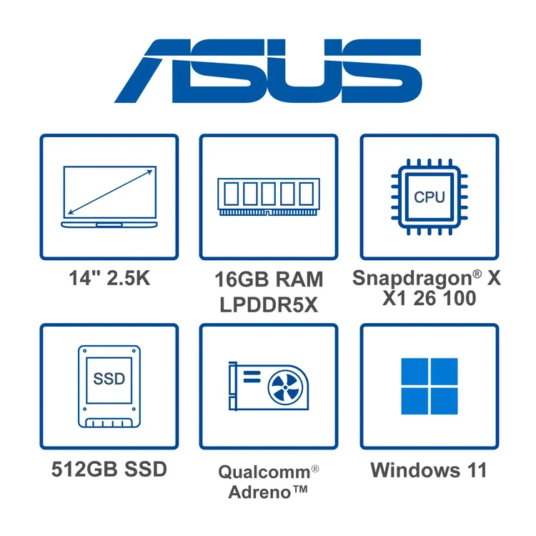 [2=Capacidad de Disco=Estado Solido SSD 512 GB, 1=Procesador=Qualcomm Snapdragon X Plus X1P, 3=Memoria RAM=16 GB, 4=Tamaño Pantalla=14 Pulgadas]