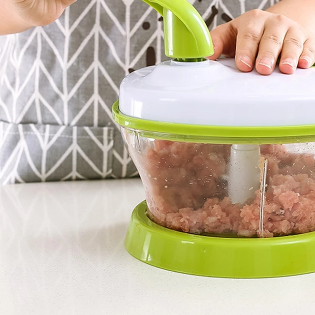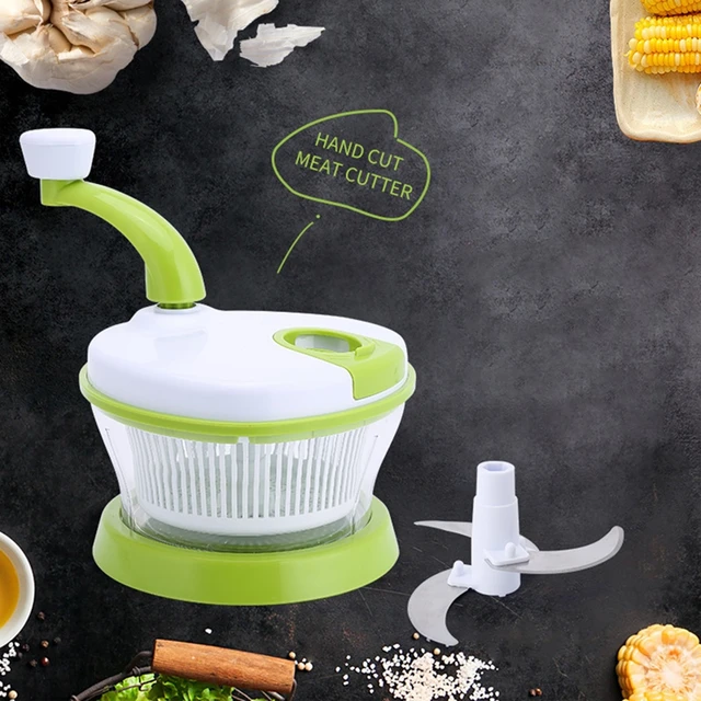 Tamaño: Longitud: 21cm; Ancho: 20,5 cm; Altura: 18cm Color: verde Material: plástico Modo de trabajo: manivela manual