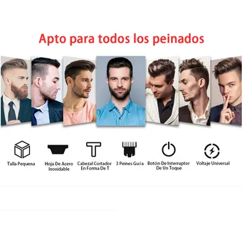 El cortapelos está equipado con una cuchilla afilada de acero al carbono en forma de T y un potente motor, que proporciona una precisión de alto rendimiento, permite cualquier peinado y previene la irritación de la piel.