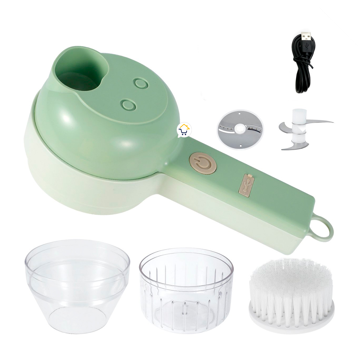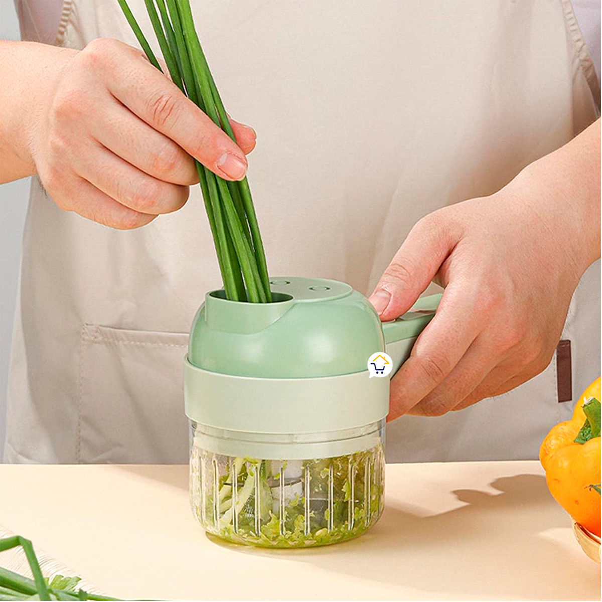 - Juego de cortador de verduras eléctrico portátil 4 en 1: el cortador de verduras puede cortar rápidamente alimentos en segundos, haciendo que picar y adornar ingredientes sea más cómodos y fácil.