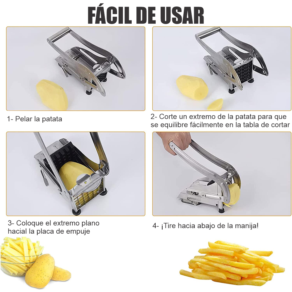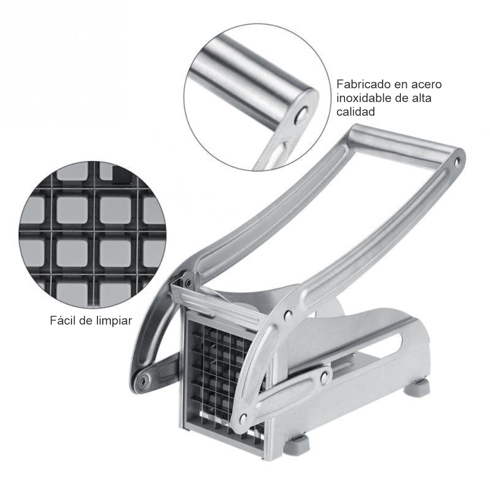 CORTADOR DE PATATAS DE ACERO INOXIDABLE, PICADOR, TRITURADOR DE PATATAS PARA PEPINO, ZANAHORIA, CORTADOR DE PATATAS FRITAS CON 2 CUCHILLAS