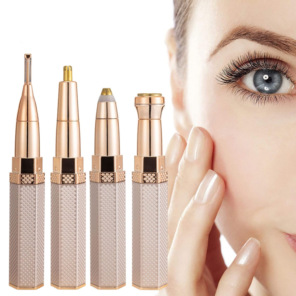 Depiladora eléctrica 4 en 1: aquí hay 4 tipos de cabezales de corte de repuesto, incluyendo un cabezal de recortadora de cejas, cabezal de recortadora de nariz, cabezal de recortadora corporal y recortadora de barba, dispositivo multifuncional depiladora de cejas para mujeres para satisfacer tus necesidades diarias.