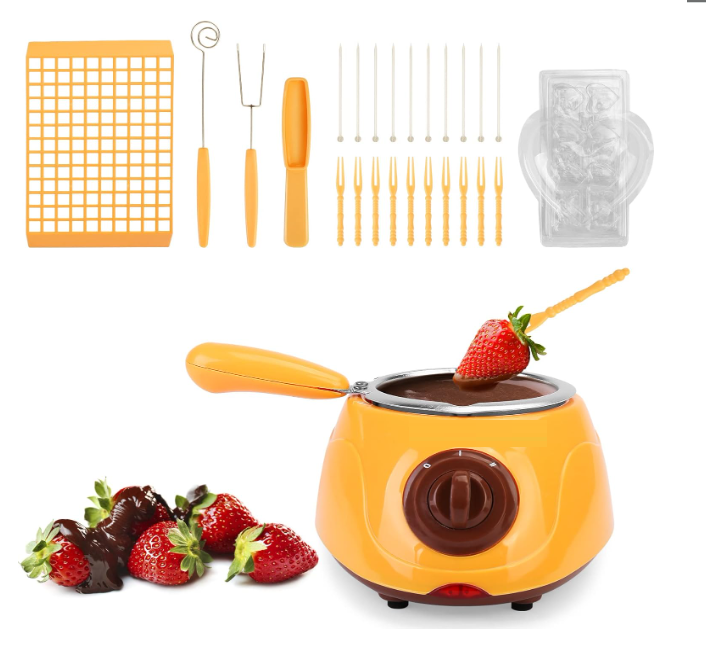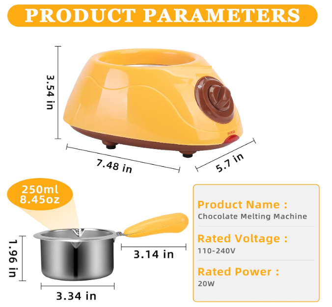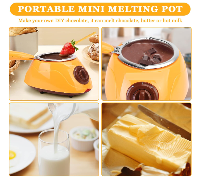 Ideal para Fundir Chocolate: Diseñada específicamente para fundir chocolate de manera uniforme y suave, perfecta para crear postres cubiertos de chocolate, chocolates moldeados, bombones y mucho más. Versatilidad de Uso: Compatible con cualquier tipo de chocolate, desde chocolate blanco y con leche hasta chocolate negro. Experimenta con diversas recetas, desde postres y helados hasta frutas cubiertas de chocolate y fondues. Dos Temperaturas de Funcionamiento: Equipada con dos opciones de temperatura, la chocolatera te brinda control total sobre el proceso de fundido. Ajusta la temperatura según tus necesidades y el tipo de chocolate que estés utilizando para obtener siempre la textura perfecta. Material de Alta Calidad: Fabricada en acero inoxidable, garantiza durabilidad, resistencia al desgaste y una fácil limpieza, asegurando que tu chocolatera se mantenga en excelentes condiciones uso tras uso. Diseño Práctico y Seguro: Su diseño compacto y ergonómico incluye un asa resistente al calor para un manejo seguro, y una tapa transparente que permite vigilar el proceso de derretimiento sin abrir el recipiente, manteniendo el chocolate a la temperatura ideal.