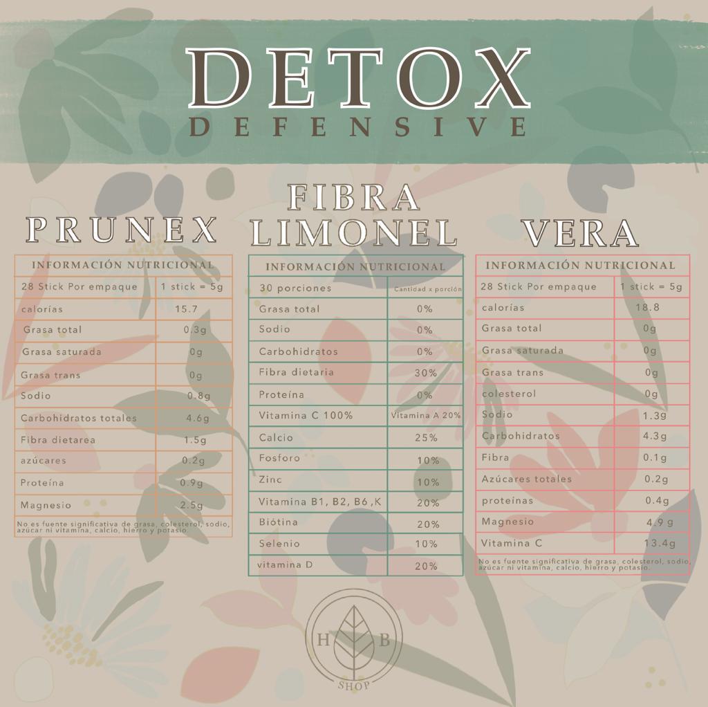 Se adjunta imagen donde se explica la diferencia entre detox: Básico, plus y defensive.