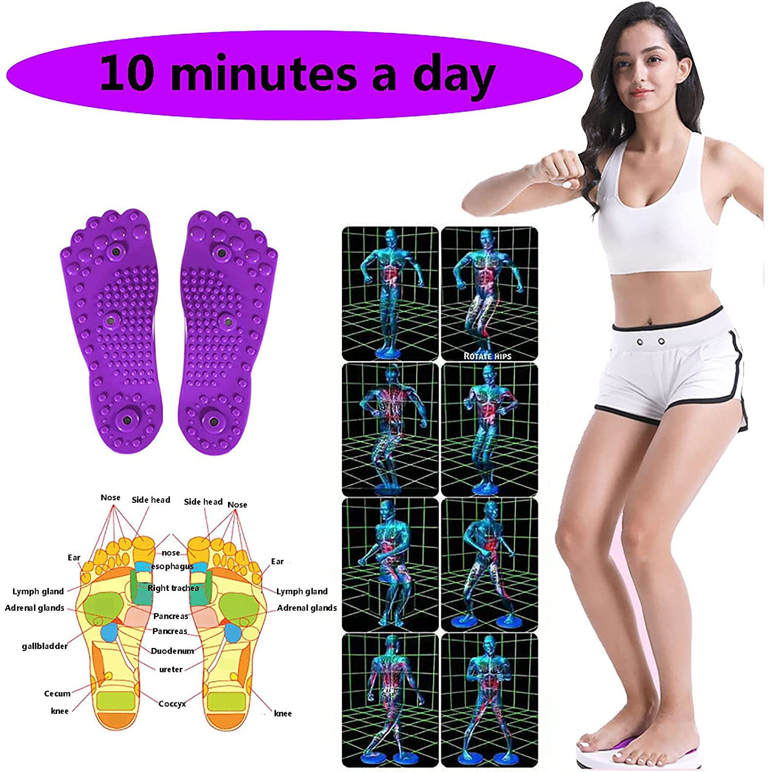 El disco de onda masajeará y estimulará los puntos meridianos en la parte inferior de los pies y ayudará a promover la buena salud. Si giras tu camino hacia abdominales, caderas y muslos más delgados; estimula la circulación sanguínea; masajea los pies, quema calorías de forma eficaz y combina los beneficios del ejercicio aeróbico con la reflexología. Diseño compacto y portátil, ideal para entrenar en casa.