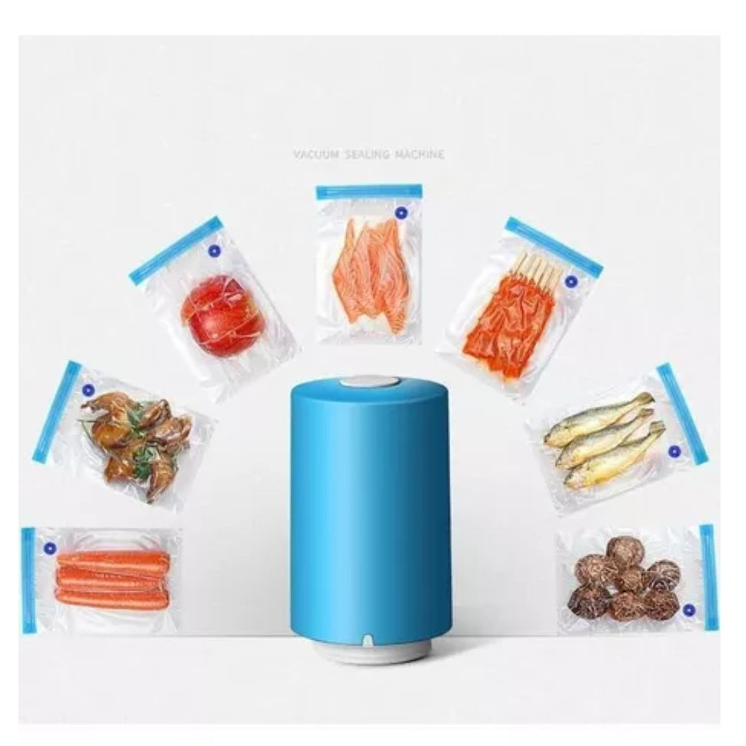 Ideal para uso diario con carnes, quesos, frutas, verduras y otros alimentos refrigerados.Funciona para almacenar, congelar y marinar alimentos y comidas.Sin cable, compacto y fácil de usar.Un toque opera el vacíoIncluye 6 bolsas reutilizables; 4 bolsas de sellado de tamaño de cuarto y 2 bolsas de sellado de tamaño galón.