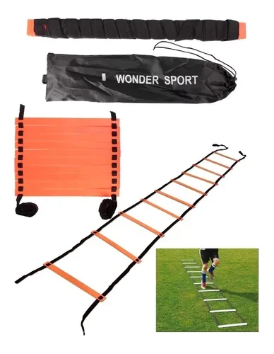 Escaleras de agilidad @Medidas: Largo 4 mts x 50 cm Ancho @Reata de 1 Pulgada @Escalera de Agilidad de 9 pasos @Pasos Ajustables @Peldaños en PVC de alta resistencia @Fabricadas con un material ligero y resistente para su larga duración @Ideal para desarrollar habilidades tales como: coordinación, equilibrio, ritmo, control del cuerpo, psicomotricidad y sobre todo la agilidad de pies. @Pesa poco y es fácil de transportar @Puedes trabajar diferentes apoyos: monopodal y bipodal @Se puede utilizar en cualquier espacio