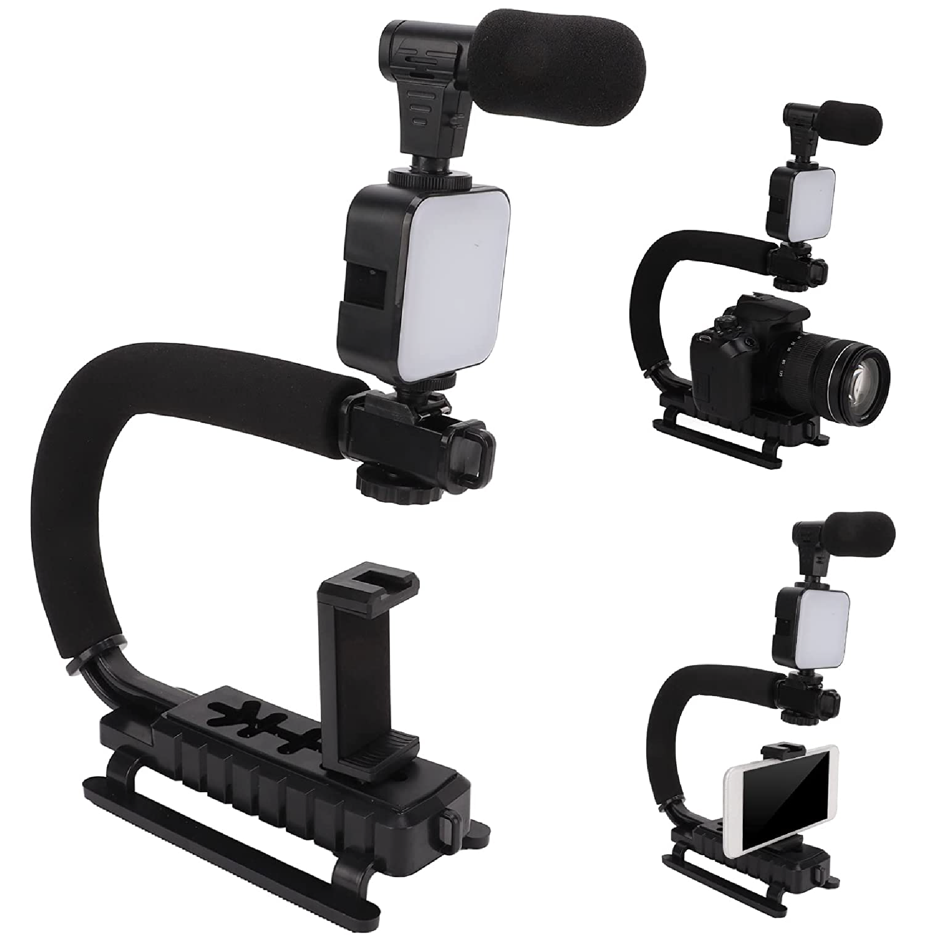 Video de acción de ángulo bajo: puede instalar una variedad de teléfonos inteligentes y cámaras réflex digitales con rosca de 1/4 pulgadas, luz LED y flash, micrófono. Y se puede grabar en vídeo de acción de ángulo bajo.