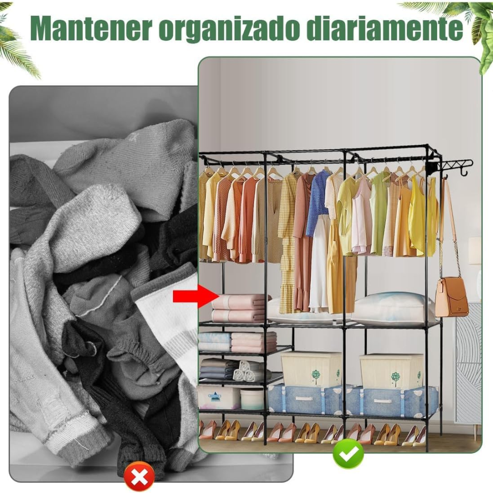 Excelente Producto Relación Calidad Precio Los organizador de ropa es una excelente solución para la falta de espacio. Este ropero closet de gran capacidad puede maximiza su espacio, lo que resolver el problema de secar y almacenamiento. El diseño abierto le permite encontrar rápidamente lo que necesita. Ligero y fácil de mover, es más conveniente que los gabinetes de madera.