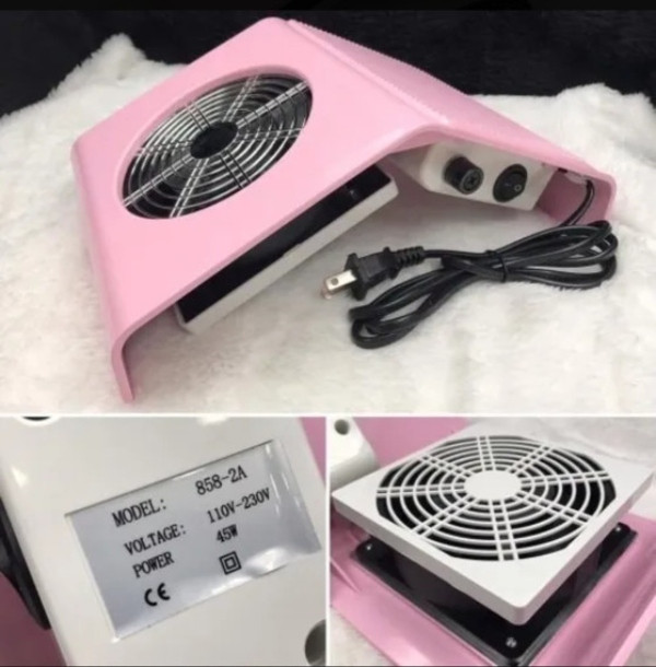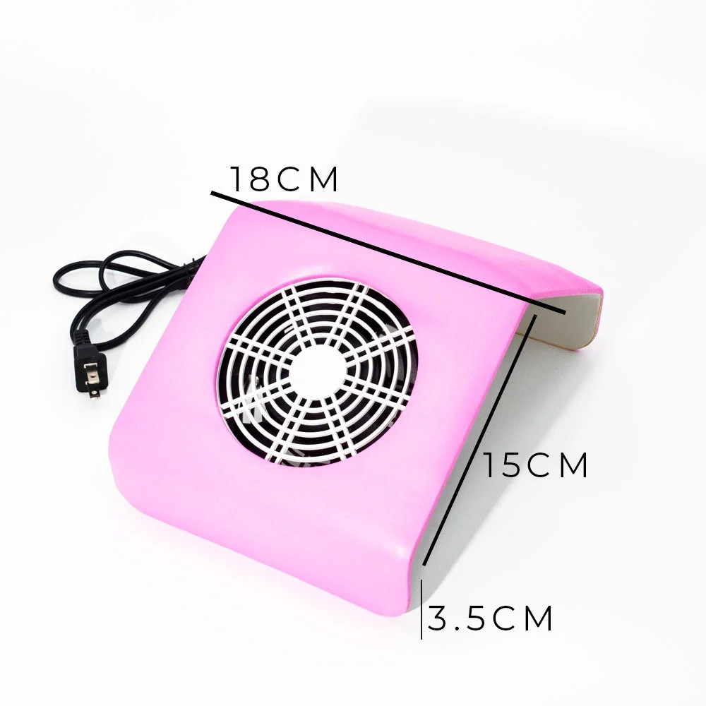 Característica: Ventilador potente para recoger el polvo creado al limar o pulir las uñas. Muy duradero y el diseño es Muy bonita. Ventilador potente para recoger el polvo creado al limar o pulir las uñas. Equipado con interruptor de encendido/apagado, con motor potente y silencioso, conveniente de usar. Adecuado para manos y pies. Adecuado para salón de manicura, Escuela/Universidad de manicura, uso personal, venta al por mayor, etc. El paquete incluye 1 unidad de bolsas colectoras de polvo que se pueden cambiar y lavar.