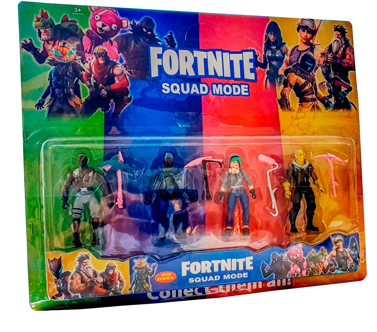 Hermosas Figuras del divertido juego Fortnite, en el pack vienen 4 figuras cada una con sus respectivos objetos.