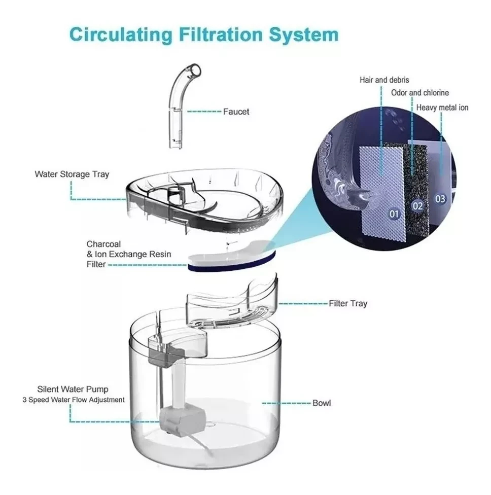 El sistema de ruido ultrabajo no producirá ruido, y su mascota se atreverá a beber agua debido
