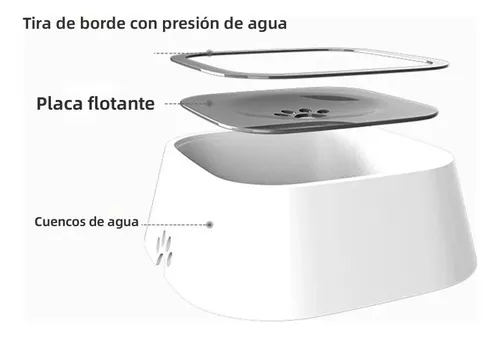 Con este bebedero tu peludo jamas se volverá a mojar bigotes y orejas, ya que con su sistema flotante hará que la rejilla proporcione el agua suficiente y a medida que va tomando esta también va bajando.