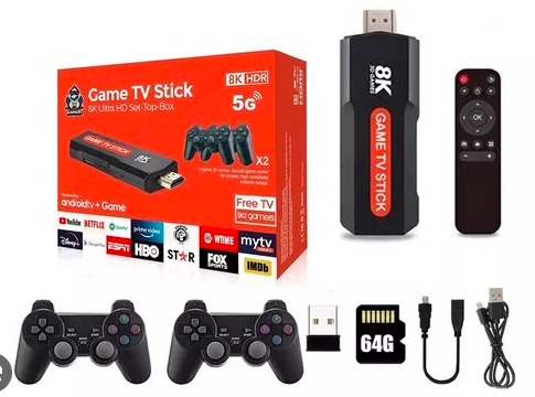 El Game TV Stick 8K Ultra HD Game X8 es una consola de juegos innovadora que ofrece una experiencia excepcional. Con más de 10 emuladores de consolas retro que equivalen a 10.000 juegos, este dispositivo proporciona horas interminables de diversión. Este sistema cuenta con un sistema dual para Android TV Box, lo que significa que puedes acceder a una variedad de plataformas de transmisión, como Netflix, Disney, HBO, Prime Video, y más. Además, incluye dos mandos de joystick inalámbricos de 2,4 GHz para una experiencia de juego sin cables y un control para dirigir las plataformas de streaming.