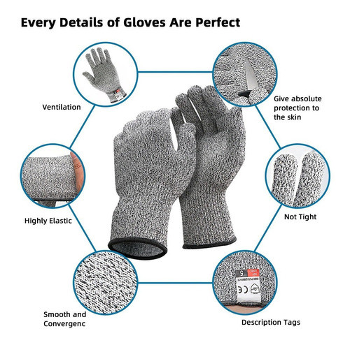 Guantes duraderos y resistentes a los cortes: el guante transpirable está hecho de fibra de polietileno y tiene resistencia al corte de nivel 5 EN388, que será una gran protección contra cortes accidentales.