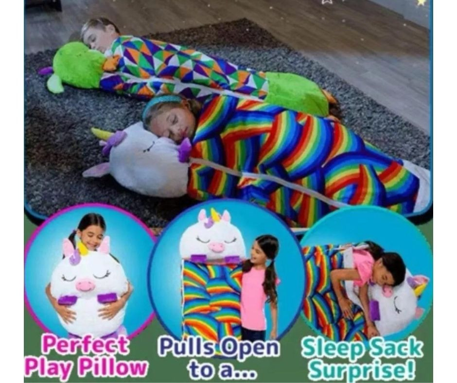Almohada y saco de dormir en uno: la almohada de juego perfecta. Cuando sea el momento de dormir, simplemente tira de sus pies para revelar un acogedor saco para dormir. Cuando termine la siesta, el saco de dormir se pliega fácilmente y está asegurado por dos botones de presión y puedes jugar de nuevo
