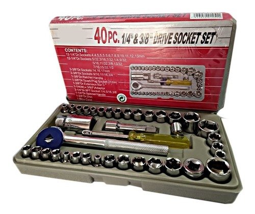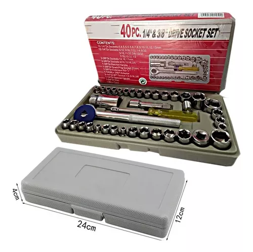 Juego de raches de 40 piezas 14PC 1/4 » Dados 4, 4.5, 5, 5.5, 6, 6.5, 7, 7.5, 8, 9, 10, 11, 12, 13m m 14PC 1/4 » Dados 5/32 «, 3/16 «, 7/32 «, 1/4 «, 9/32 «, 5/16 «, 11/32 «, 3/8 «, 13/32 «, 7/16 «, 15/32 «, el 1/2 «, 17/32 «, 9/16 «