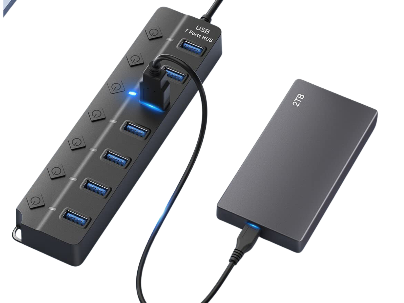 Hub USB 3.0 de 7 puertos: expande instantáneamente un solo puerto USB a 7 puertos USB 3.0, puedes conectar un ordenador con más periféricos USB como teclado y mouse, unidad flash, impresora y mucho más.