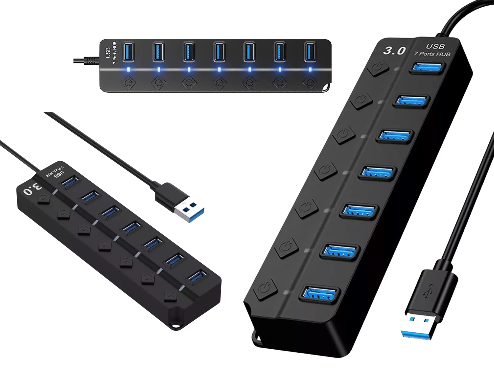 PRODUCTO: Multiplicador de puertos USB 3.0 que permite conectar hasta 7 dispositivos USB con velocidades de transmisión de hasta 5Gbps.