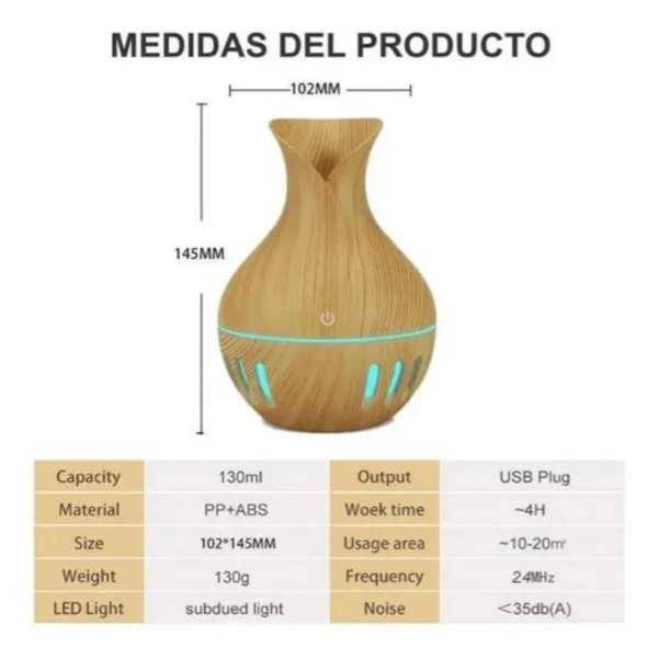 Humidificador Difusor de Aromaterapia con Luces Ultrasónico
