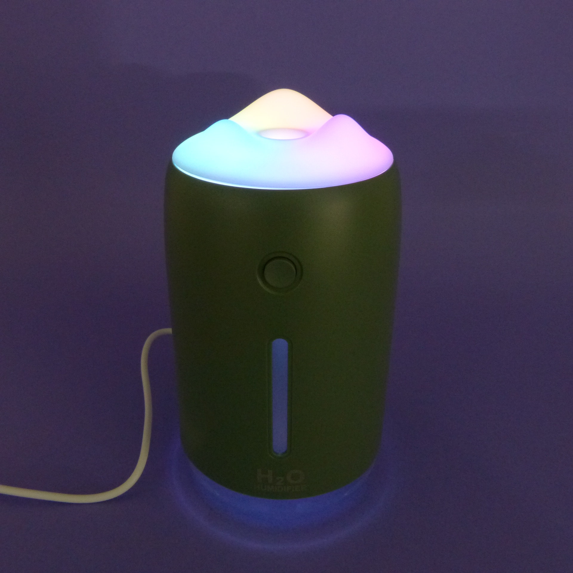 Humidificador en cilindro con cabezal estilo montañas, luz led de colores cambiables, protección de tiempo, niebla fina, muy silencioso, luz colorida, luz de noche suave, incluye cable USB. Colores y estilos sujetos a inventario