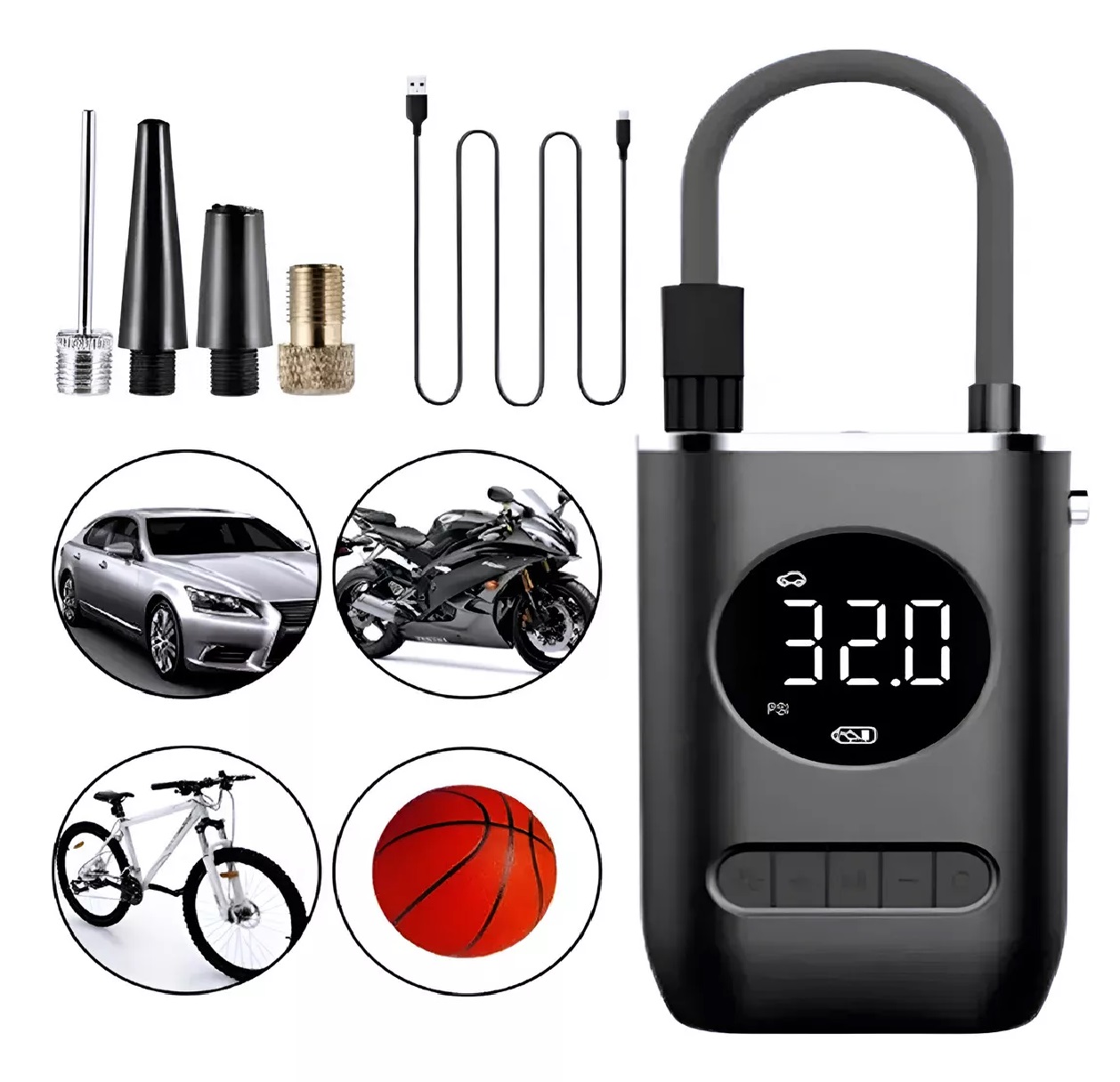 Cuatro modos preestablecidos para bicicletas, motocicletas, automóviles y pelotas, con pantalla LED para una selección fácil. Modo manual para establecer la presión a gusto.