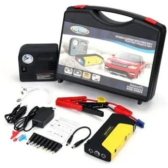 Iniciador De Bateria Con Compresor High Power Cargador para baterías de autos de alta potencia. **garantía 3 meses** Cargador para baterías de autos de alta potencia. Arranque de emergencia. Posee linterna, luces guía, cortador de vidrios para emergencias, cortador de cinturones de seguridad. Adicionalmente encontrarás un compresor de aire para inflar llantas de autos, bicicletas, motos.