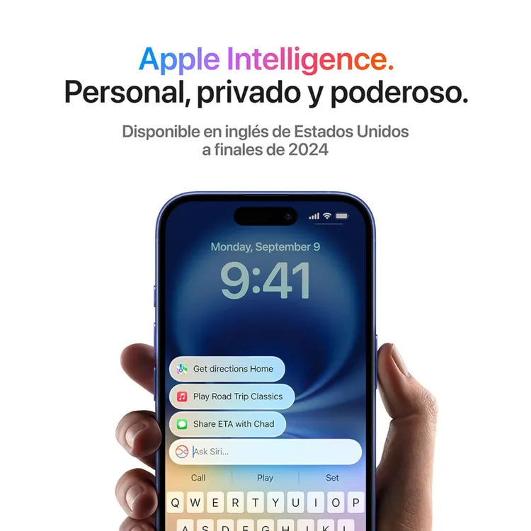 Como parte de nuestros esfuerzos por ser neutros en carbono para 2030, el iPhone 16 y el iPhone 16 Plus no incluyen adaptador de corriente ni EarPods. Se incluye un cable USB‑C de carga rápida compatible con puertos de computadora y adaptadores de corriente USB‑C.Te recomendamos usar cualquier adaptador de corriente USB‑C compatible. De ser necesario, puedes comprar un nuevo adaptador de corriente o unos audífonos Apple.Apple intelligence estará disponible en inglés estados unidos a finales de 2024