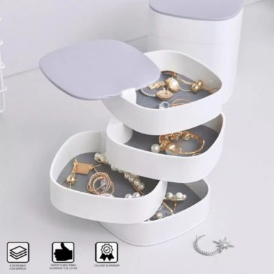 El diseño de almacenamiento giratorio de 4 capas ahorra espacio, puede almacenar eficazmente más artículos de forma ordenada y ordenada como aretes, anillos, collares, pulseras, pintalabios, cosméticos, llaves de automóvil u otros suministros pequeños. Para que puedas encontrar todo rápidamente. Muy práctico y ocupa poco espacio.
