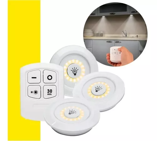 Luz LED regulable para debajo del armario, con mando a distancia, funciona con pilas, luces LED para armarios, iluminación de baño, 3 luces COB más un mando a distancia