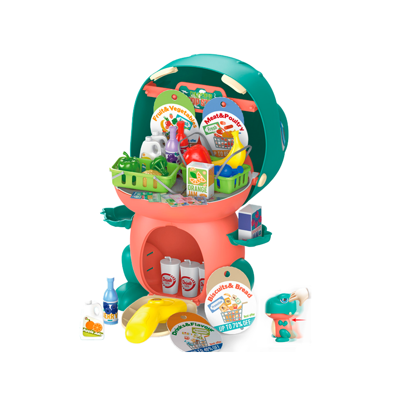 Juguete para jugar a las casitas para niños, dinosaurio de dibujos animados deslizante, transfronterizo, juego de simulación de juego de rol, aprendizaje autónomo, interacción entre padre e hijos, juegos y musica divertida. Convierte fácilmente varias formas y contiene 16 pcs.