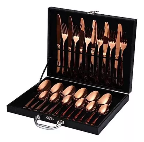 Juego Cubiertos Oro Rosa Set 24 Piezas Acero Inoxidable 24PCS -R