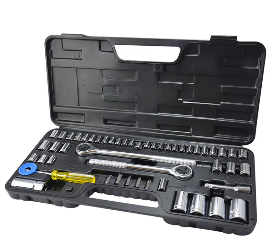 Juego 52 piezas copas -ratchet- extensión-atornillador-manija Discover, es la herramienta ideal para talleres en los que se requieran soltar o ajustar tuercas o tornillos, es un kit de 52 piezas con copas milimétricas y en pulgadas para adaptarse a la medida requerida, con extensor para facilitar soltar o ajustar tuercas o tornillos de difícil acceso, destornillador con acoplador de puntas en estrella y pala, cuenta con estuche plástico para facilitar su almacenamiento y transporte.