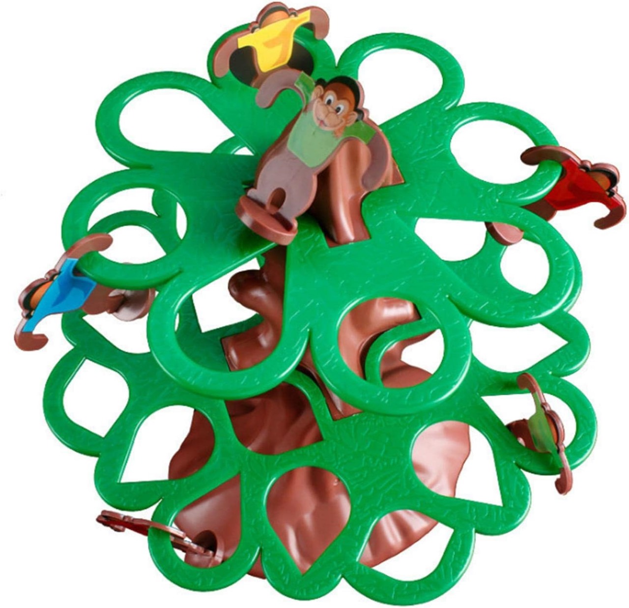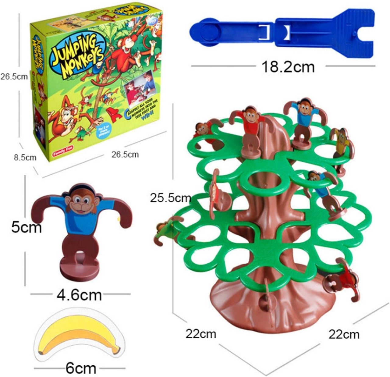 juego abundantes: Los accesorios de nuestro juego mesa Monkey Bounce son muy . El juego se compone de 2 troncos árboles, 2 toldos, 4 catapultas, 16 monos, 16 marcadores plátanos y 1 pegatina mono 4 colores.