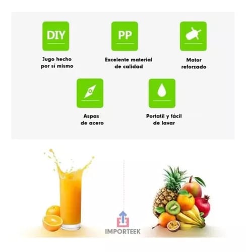 Practica juguera portátil ideal para tomar tu batido a media mañana o al terminar de entrenar, fácil de usar y practica para trasladar.