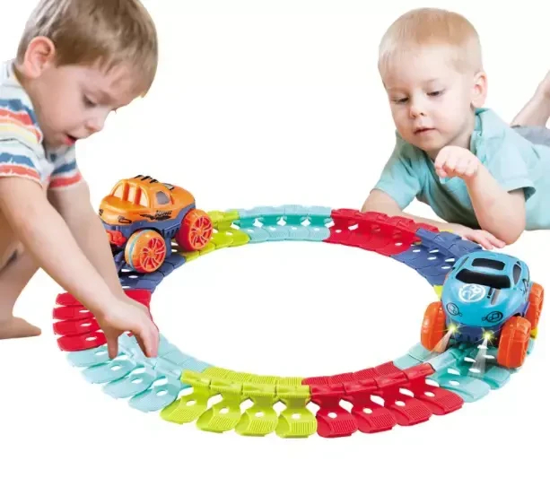 Desarrolla las habilidades prácticas de tu hijo mientras disfruta de emocionantes carreras con luz LED y rieles flexibles.