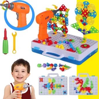 -Deja que los niños creen y desafíen juntos >>> Este rompecabezas creativo de taladro de juguete viene con 252 piezas. Tus hijos pueden utilizar el taladro de juguete y el destornillador montando las piezas de mosaico en el tablero del rompecabezas para construir modelos 2D y 3D. Por ejemplo: tanques, helicópteros, camiones, elefantes, leones, mariposas, flores, etc. Los niños pueden jugar de forma independiente durante varias horas, el juego puede animar a los niños a pensar e innovar constantemente, haciendo que el juego esté lleno de desafíos y diversión.