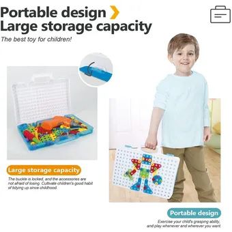 Este rompecabezas de taladro eléctrico viene con 252 piezas. Tus hijos pueden utilizar el taladro eléctrico y el destornillador montando las placas en la rejilla base para construir manualidades 2D y 3D como león, camión, mariposa, flores, pájaro, helicóptero, etc. Pueden jugar para descubrir, construir y aprender durante horas y horas de forma independiente, haciendo que el tiempo de juego sea desafiante e interesante.