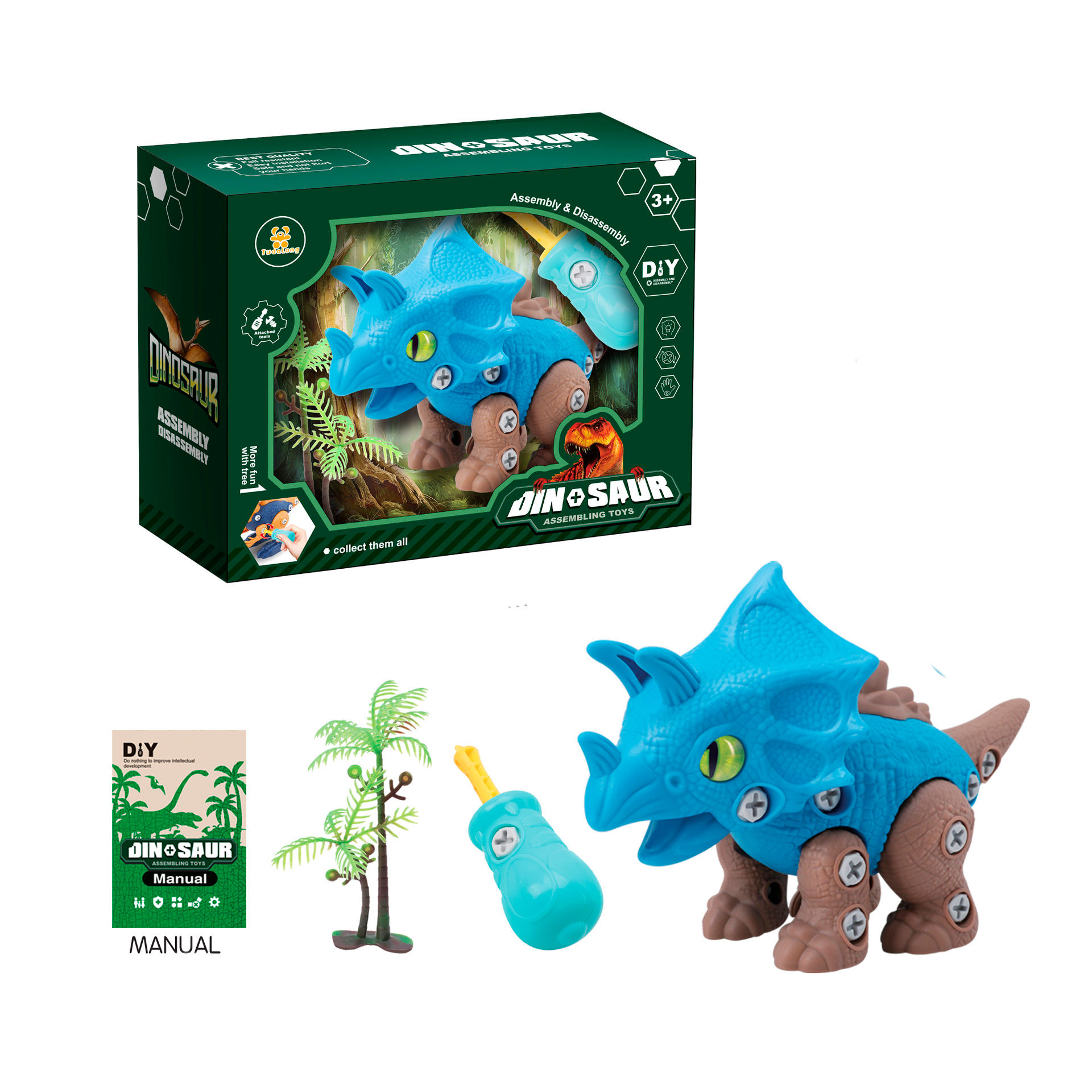 Conjunto de caja de ventana para niños, modelo de dinosaurio triceratops, tornillos de giro manual, modelo de ensamblaje extraíble, juguetes de dinosaurio ejercicio de habilidades practicas