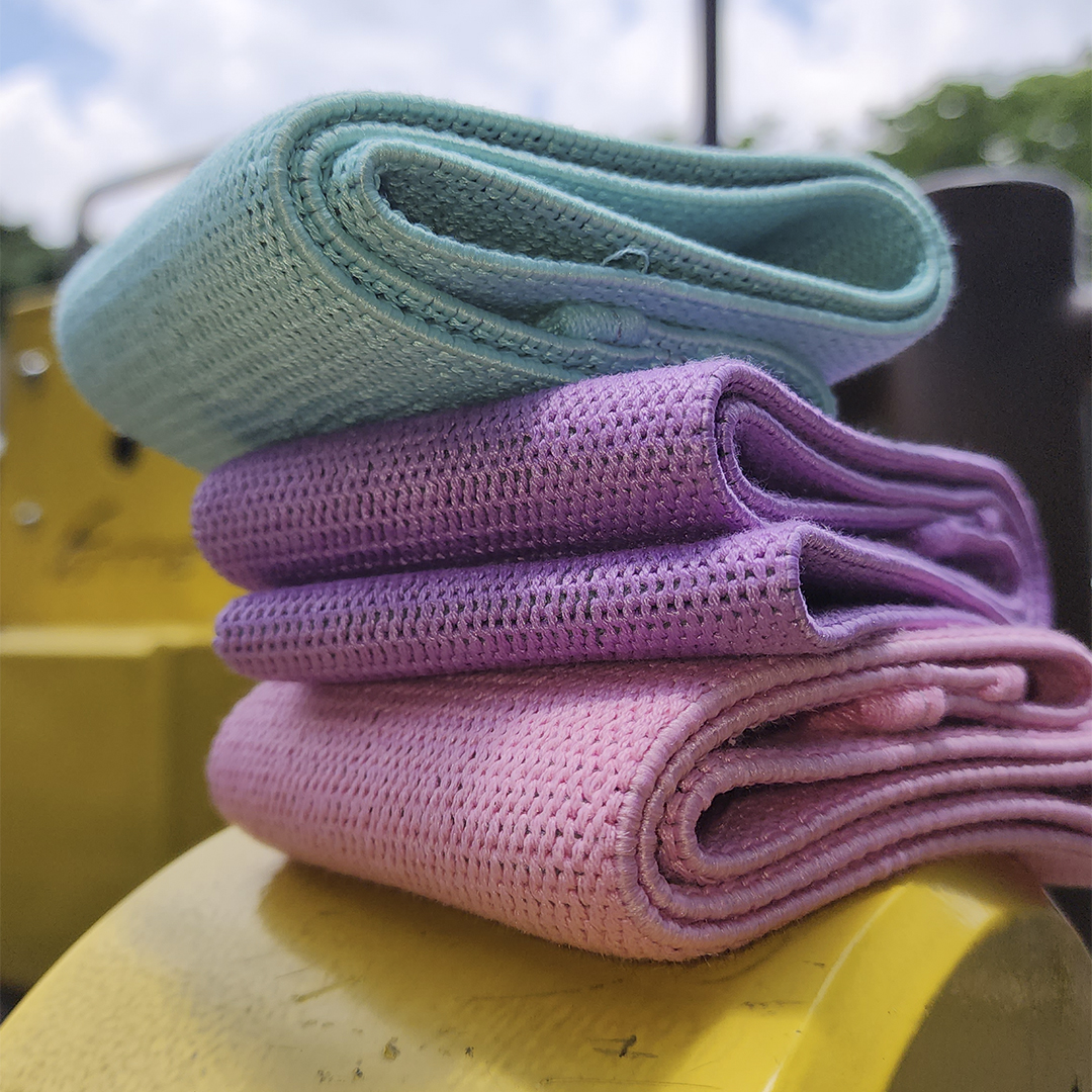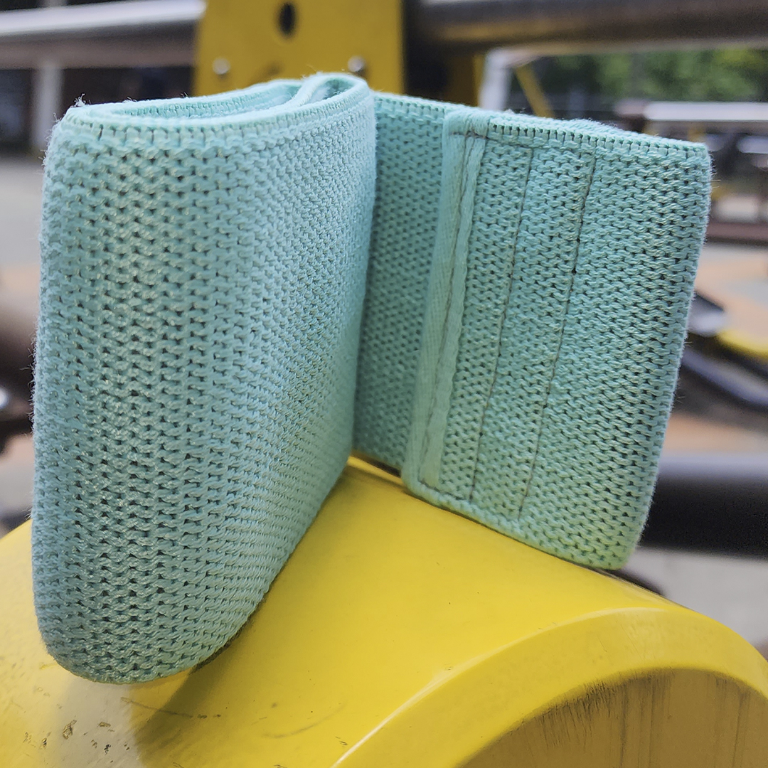 Estas bandas no se enrollarán ni deslizarán durante los entrenamientos, a diferencia de las bandas de resistencia de látex / goma. Están cosidas con un tejido elástico de algodón y poliéster superior y contienen látex de naturaleza elástica en el interior, lo que las hace más amigables con la piel, duraderas, estables y antideslizantes.