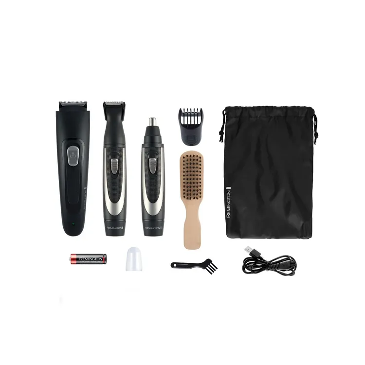 Recortadora de barba, recortadora de precisión con peine-guía (1 mm – 5 mm), cortador rotativo de nariz y oídos, peine para barba ajustable con 9 longitudes (2 mm -18 mm), estuche de almacenamiento, cepillo para barba, guia de utilización y cuidados.