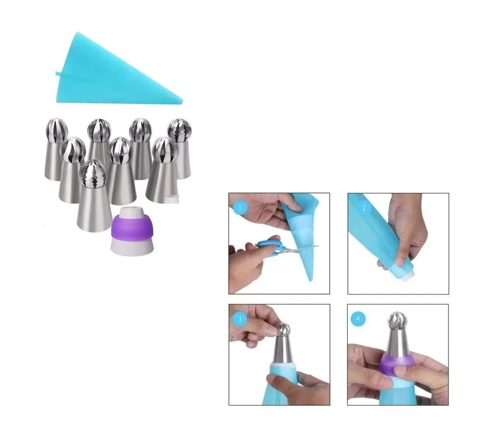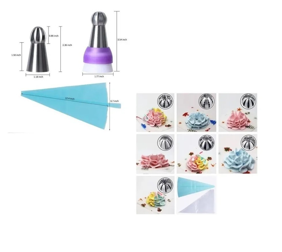 Alta calidad: todos los productos de este juego de puntas de tubería rusa están hechos de material de grado alimenticio. Las puntas de bola rusas están integralmente formadas, resistentes a ácidos y corrosión, y no se oxidan fácilmente mientras que las bolsas de repostería son lavables, duraderas y reutilizables.