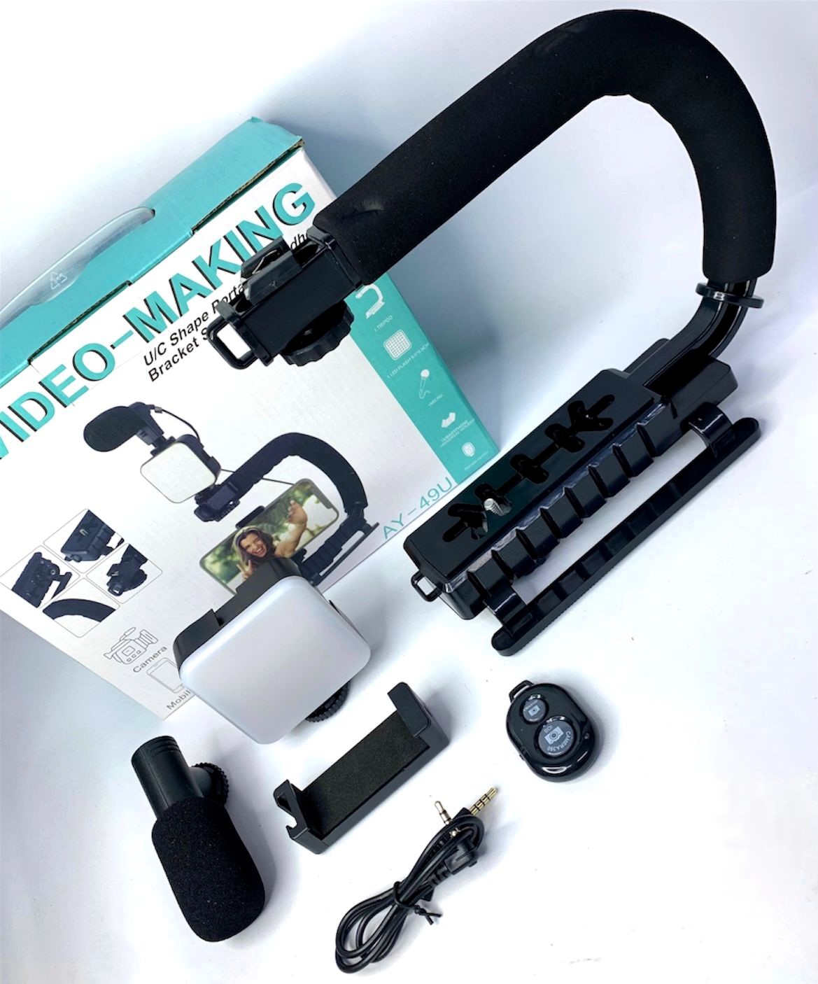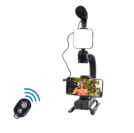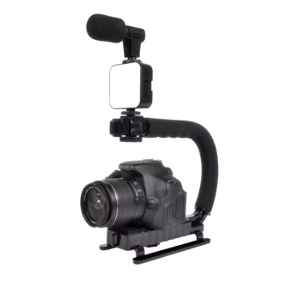 Plataforma de video portátil: Incluye un soporte de mano en forma de U, una mini luz de video LED, un micrófono, un soporte para teléfono y un obturador remoto, adecuado para blogs de teléfonos inteligentes/cámaras, grabación de video.