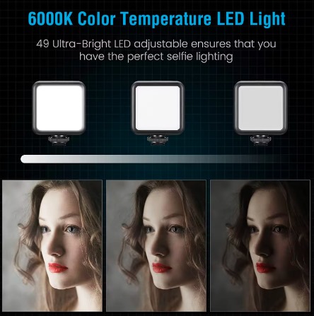 Mini luz de video LED] Con una temperatura de color de 5600K y 10 niveles de brillo ajustable, la mini luz de video LED puede proporcionar usted con luz blanca natural para su video. Mini micrófono cardioide, Con cable de audio TRS y TRRS de 3,5 mm, compatible con teléfonos inteligentes y cámaras; el patrón polar cardioide capta un sonido claro y el parabrisas de espuma puede reducir el ruido de manera efectiva.