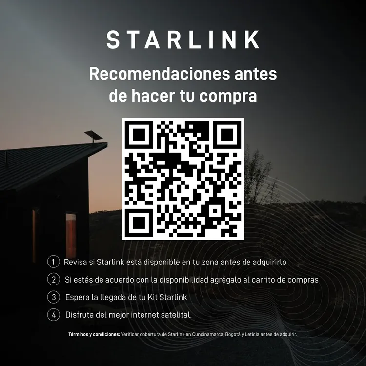 El kit Starlink tiene todo lo que necesita para conectarse en cuestión de minutos: Antena, Soporte, Enrutador de 3.ª generación, Cable Starlink (15mts), Cable de alimentación de CA (1.5mts), Fuente de alimentación