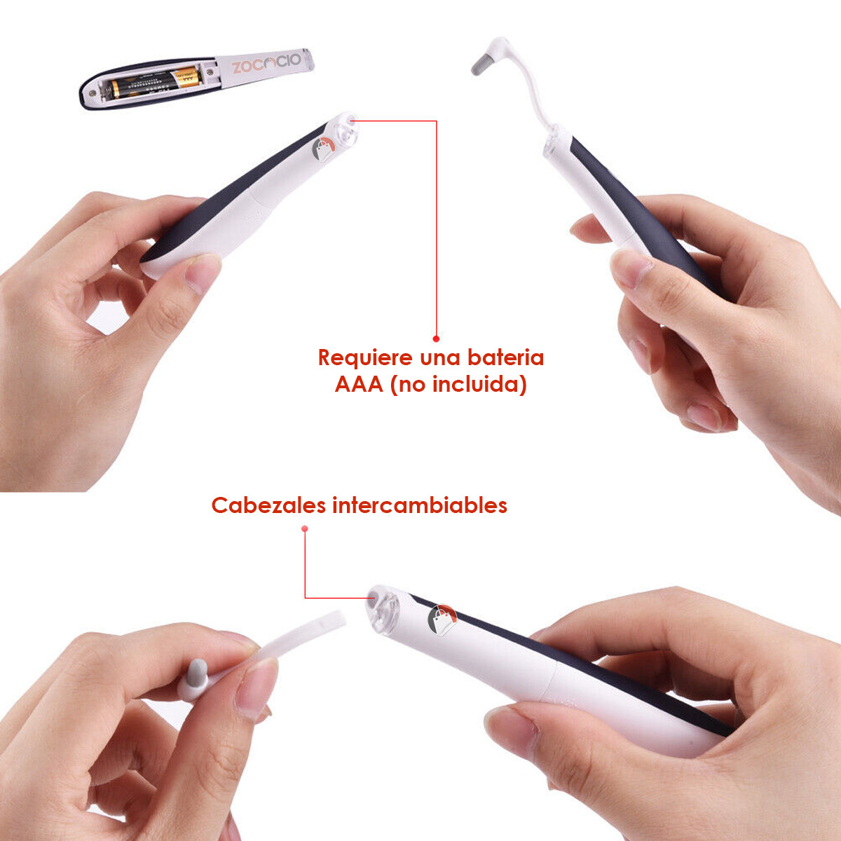 La vibración de alta frecuencia, 12000 veces la vibración Sónica, junto con la cabeza de limpieza profesional ayudan eficazmente a eliminar el cálculo dental, la placa y las manchas, logrando la limpieza a fondo de los dientes. Apertura de un botón, fácil de operar.