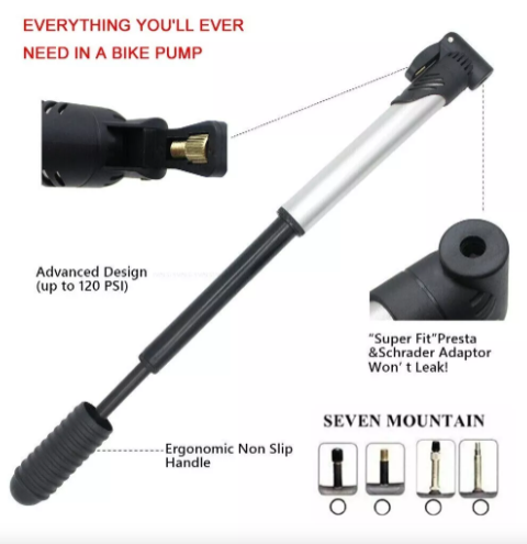 4. El inflador de aire con hebilla de bloqueo de aire rápido en la bolsa de herramientas de bicicleta es compatible con la boquilla de neumático francés y americano.