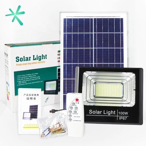 Kit Reflector Solar 100w + Control Remoto, Lámpara Led + Panel Solar Para Exteriores. New 2025