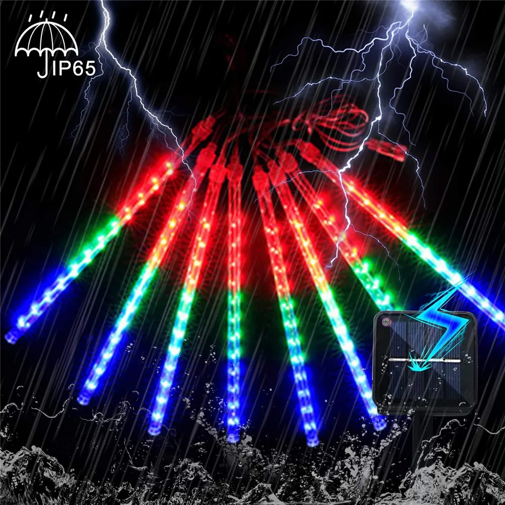 Luces LED para exteriores, luces de lluvia de meteoritos de 10 tubos, luz solar de caída de nieve para decoración de fiestas de vacaciones en Patio y jardín.