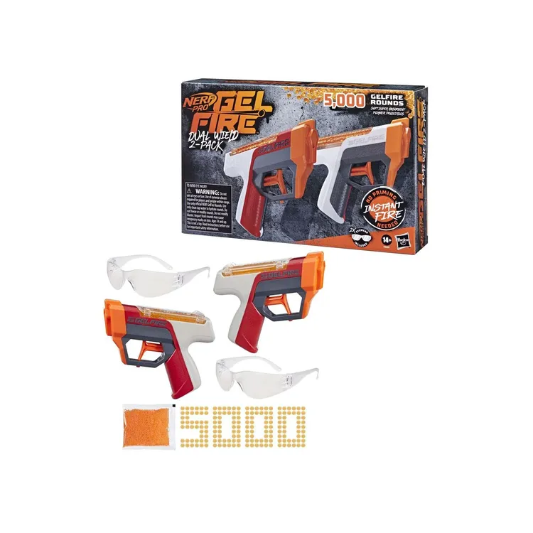 A partir de 14 años. PARA EVITAR LESIONES EN LOS OJOS: ADVERTENCIA: No apuntar a los ojos ni a la cara. El uso de lentes es obligatorio en todo momento para los jugadores y las personas en su rango de alcance. Utilizar solamente recargas NERF GelFire oficiales. Utilizar solo agua del grifo para hidratar las recargas. No congelar ni modificar las recargas. No modificar el lanzador. El impacto de las recargas puede causar marcas temporales en la piel. A partir de 14 años. No es un juguete. Leer las instrucciones antes de usar para obtener información importante sobre la seguridad. No ingerir. Mantener alejado de las mascotas. Las recargas pueden manchar. [LEGAL STATEMENTS] © 2022 Hasbro. Todos los derechos reservados.